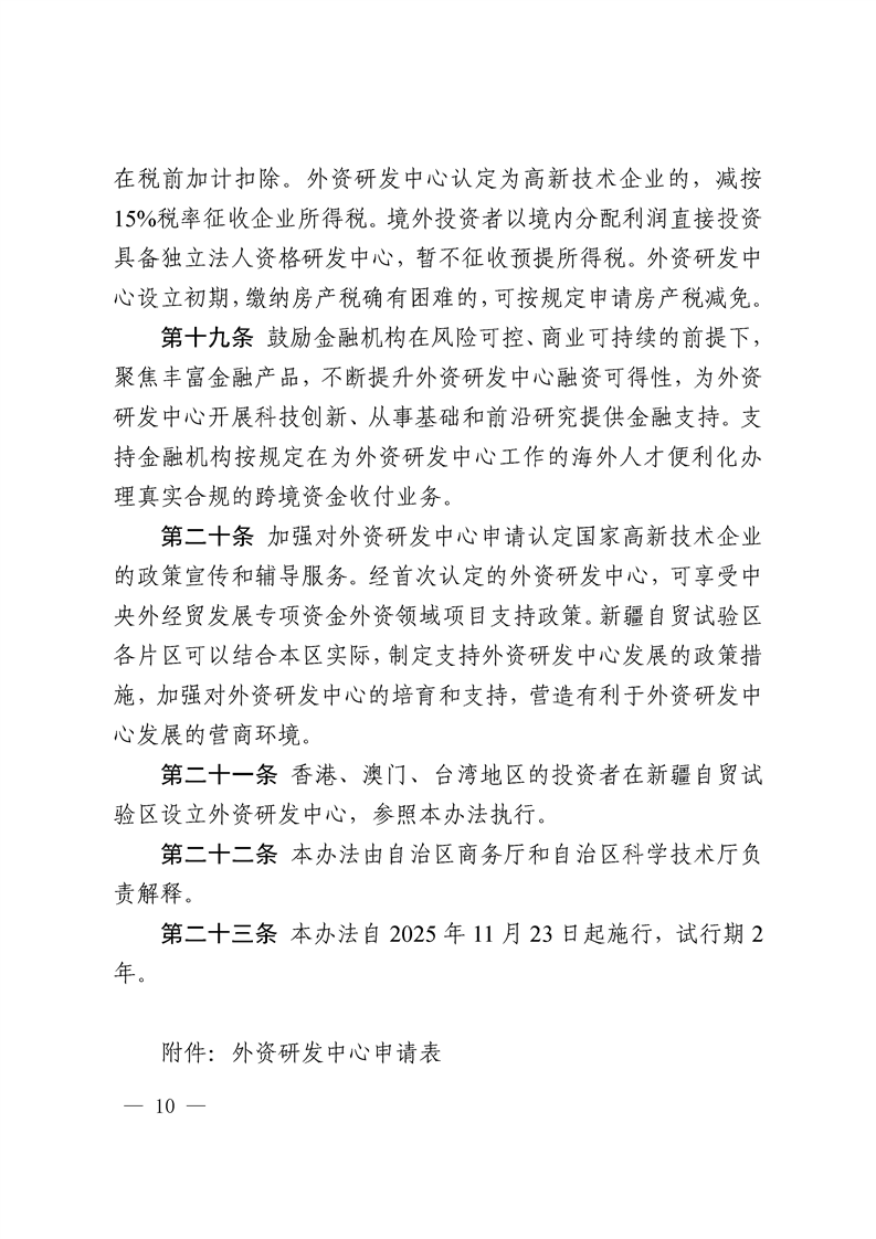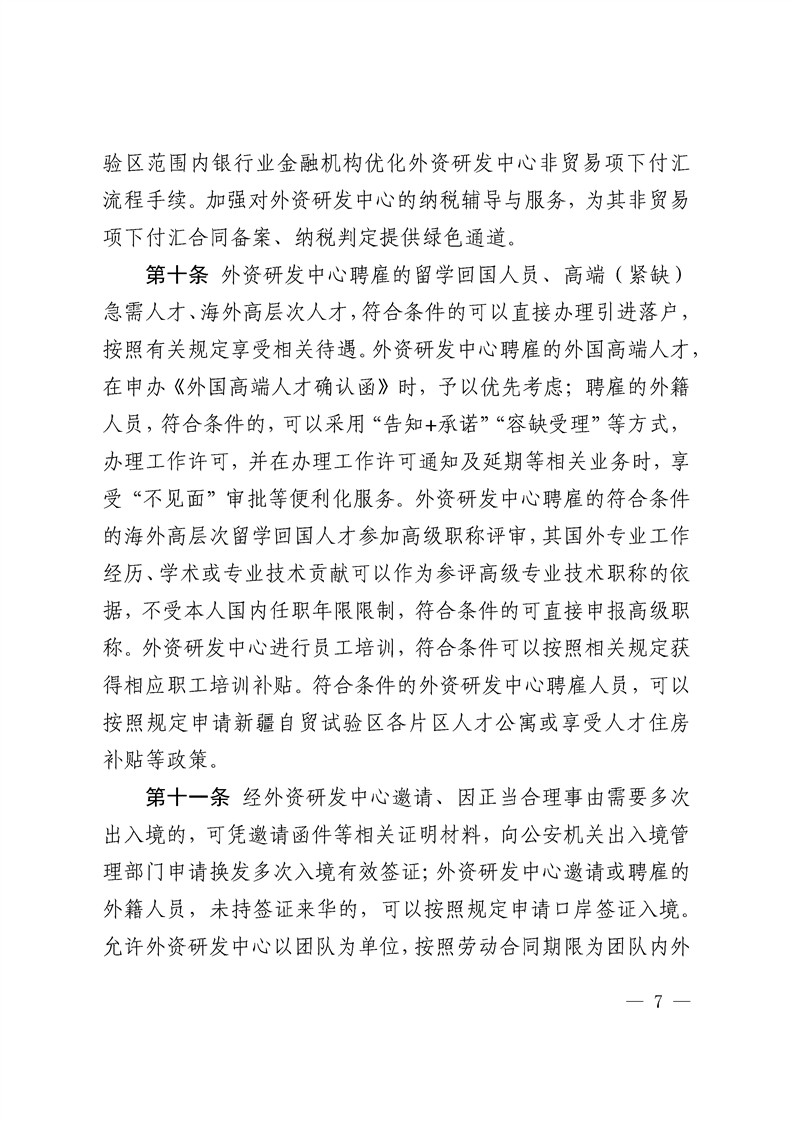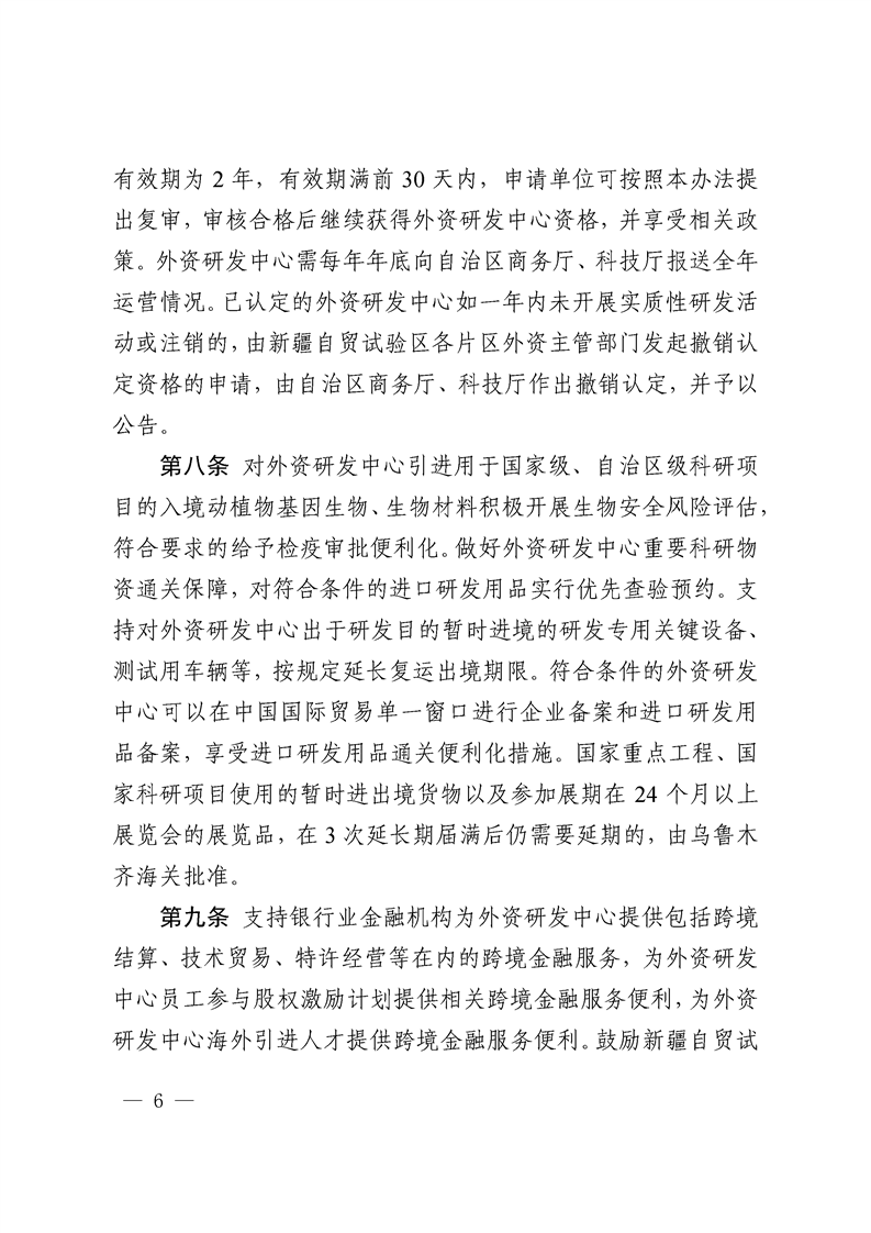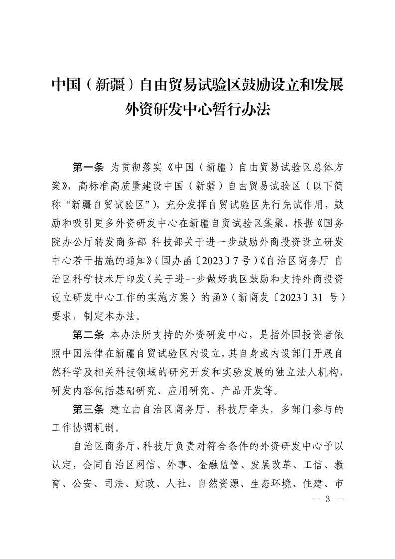 关于印发《中国(新疆)自由贸易试验区鼓励设立和发展外资研发中心暂行办法》的通知