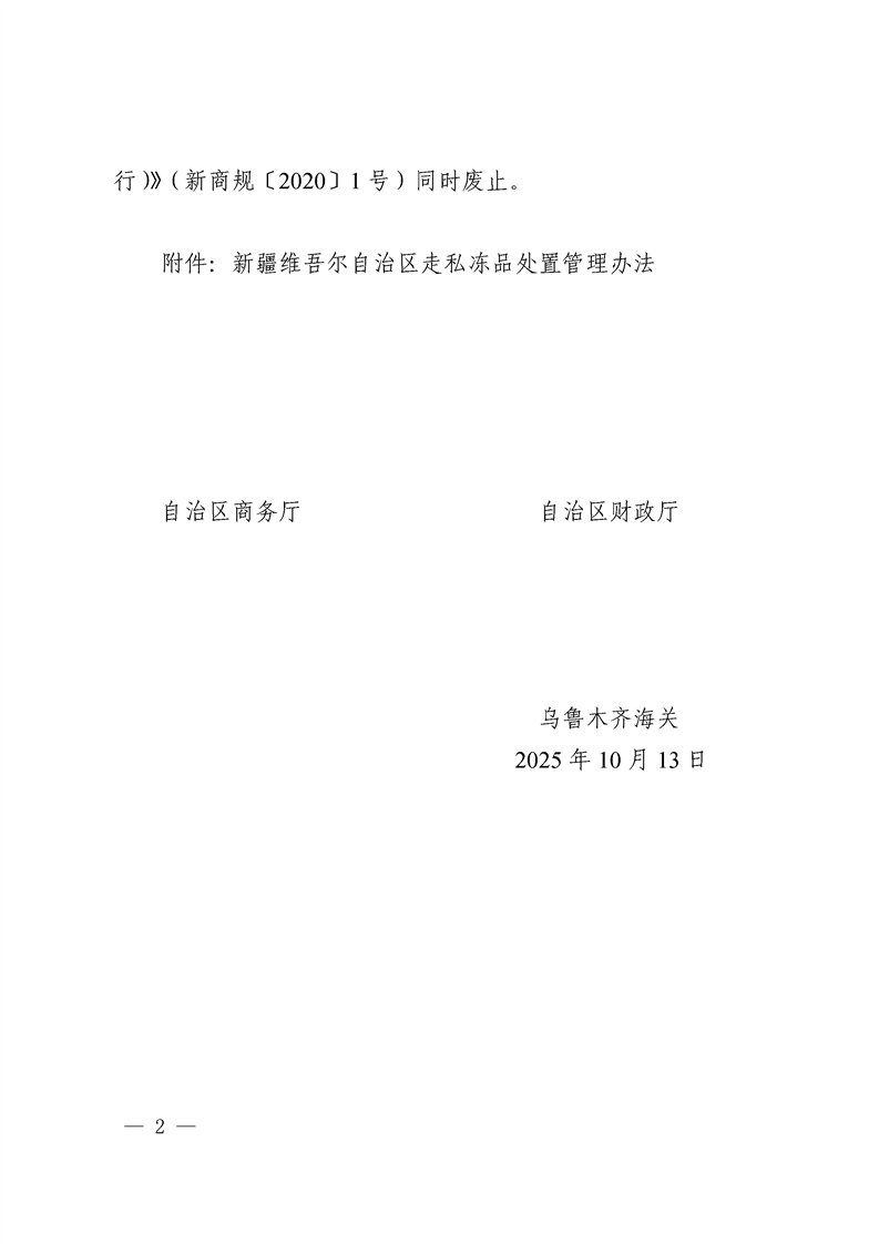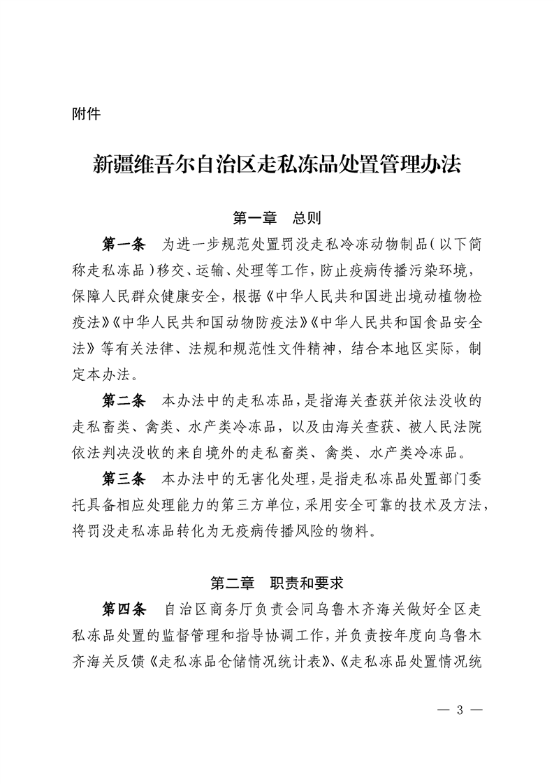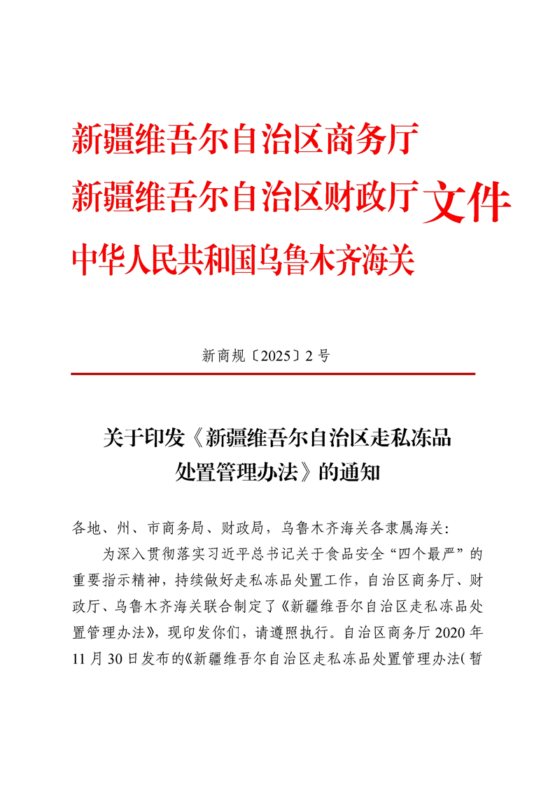关于印发《新疆维吾尔自治区走私冻品处置管理办法》的通知