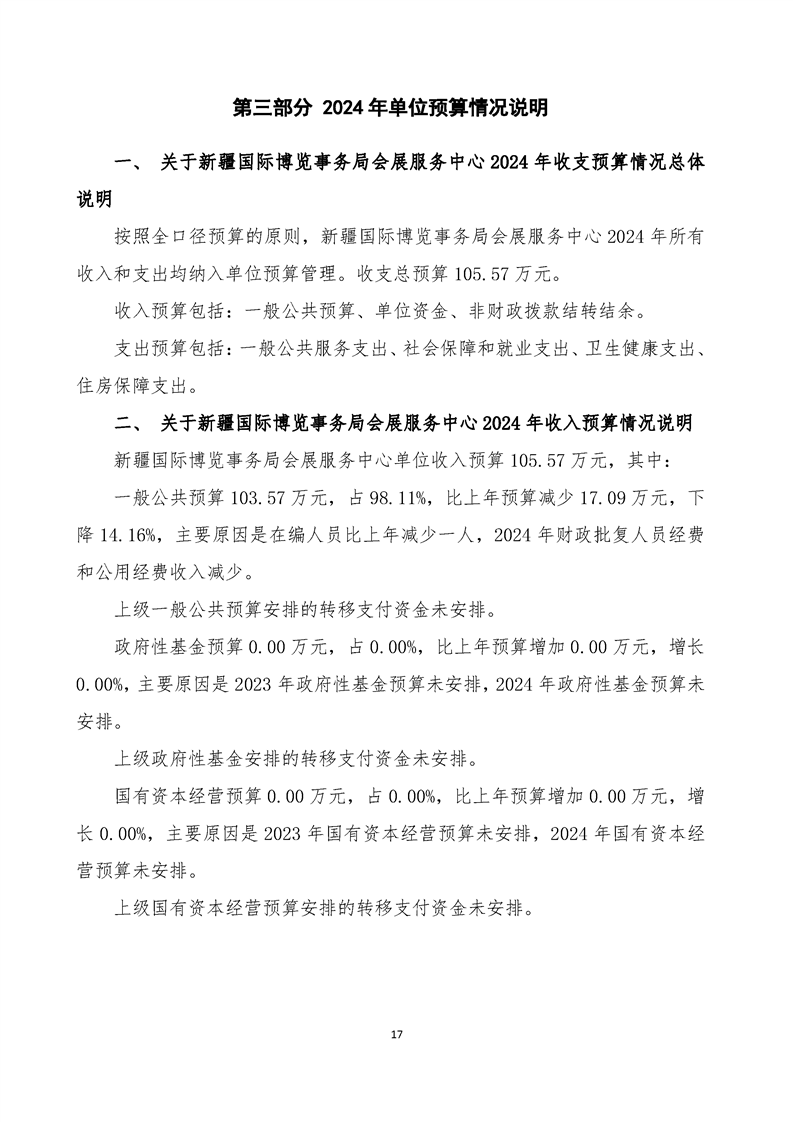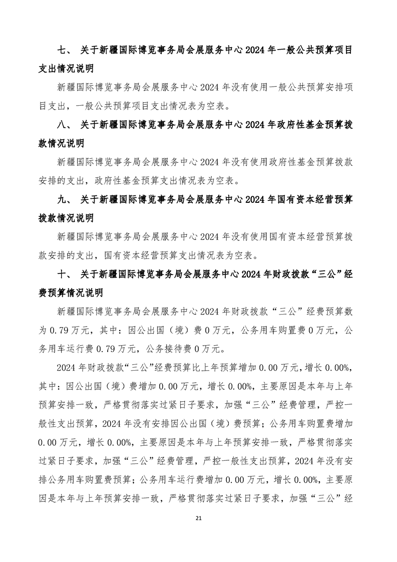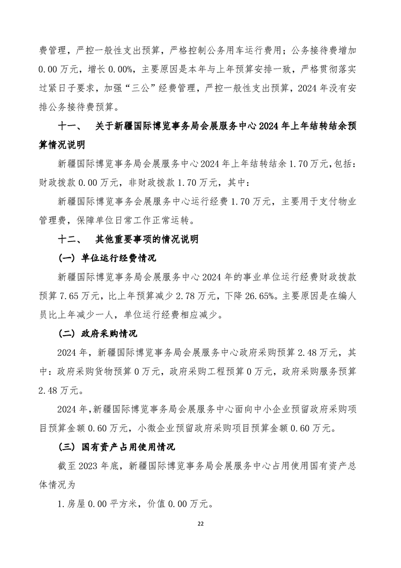 新疆国际博览事务局会展服务中心2024年单位预算公开
