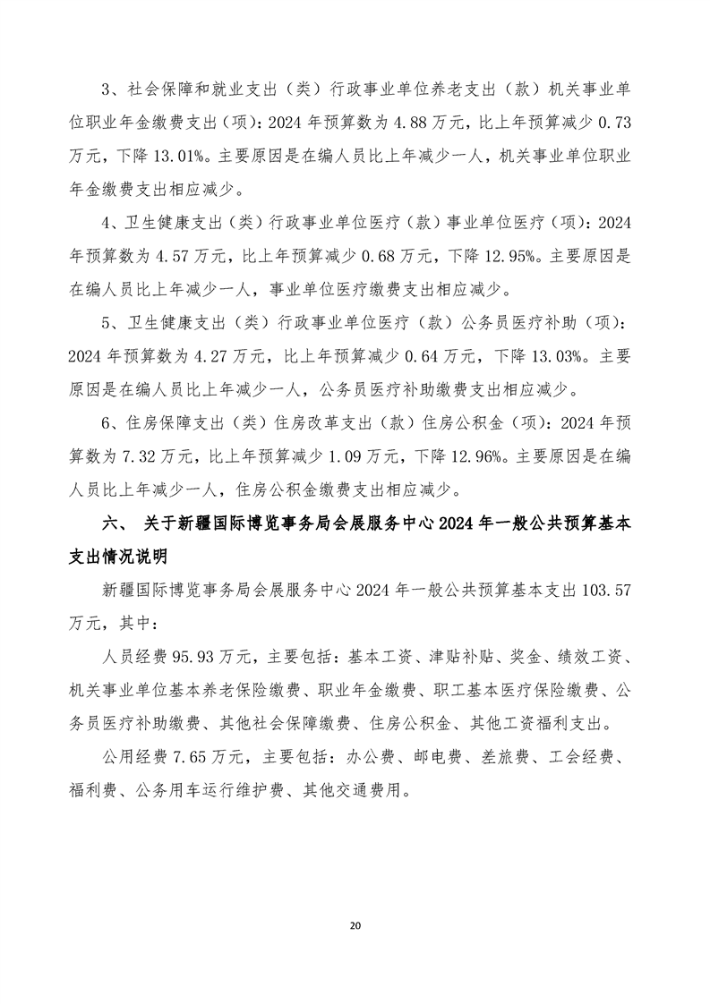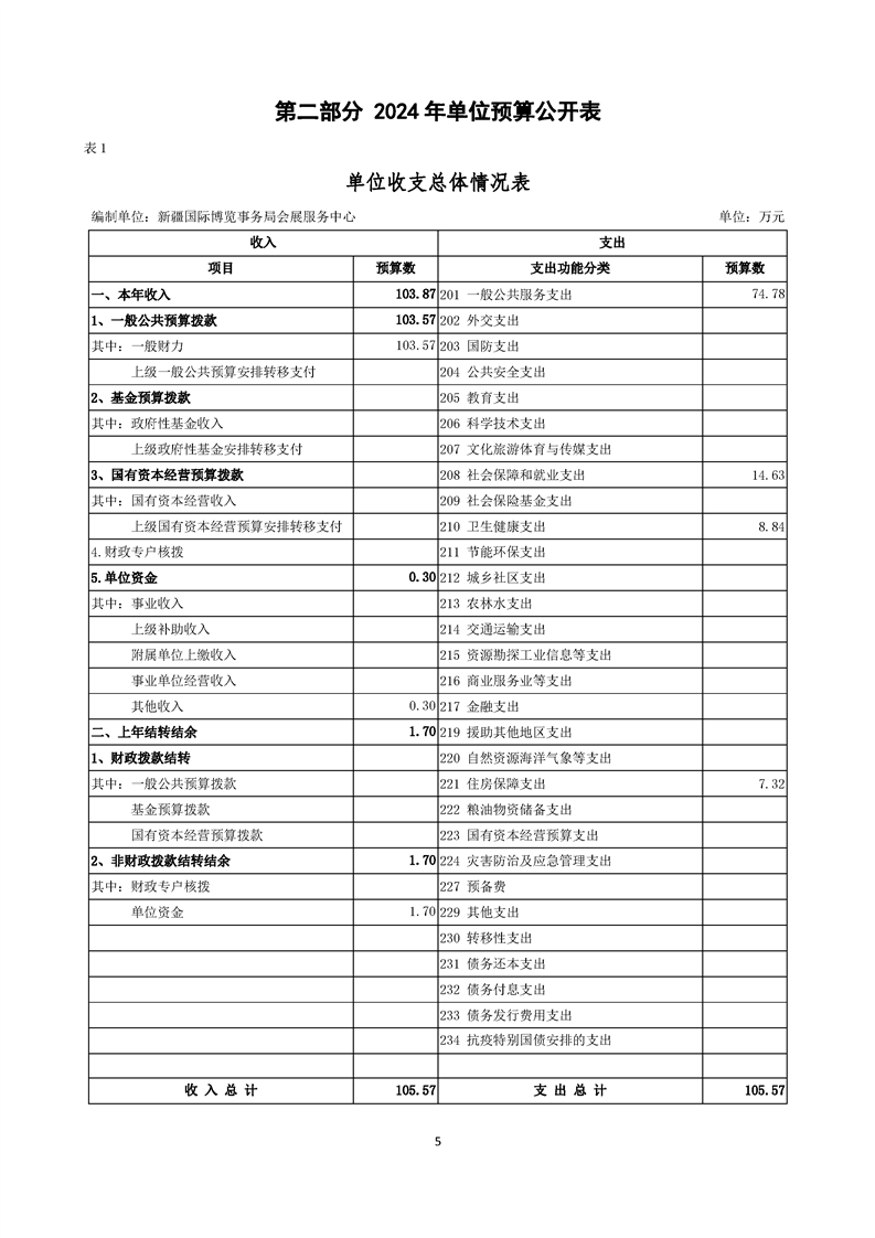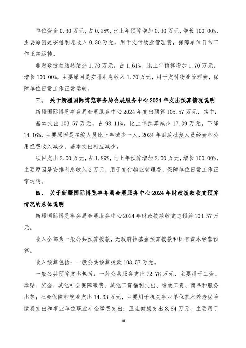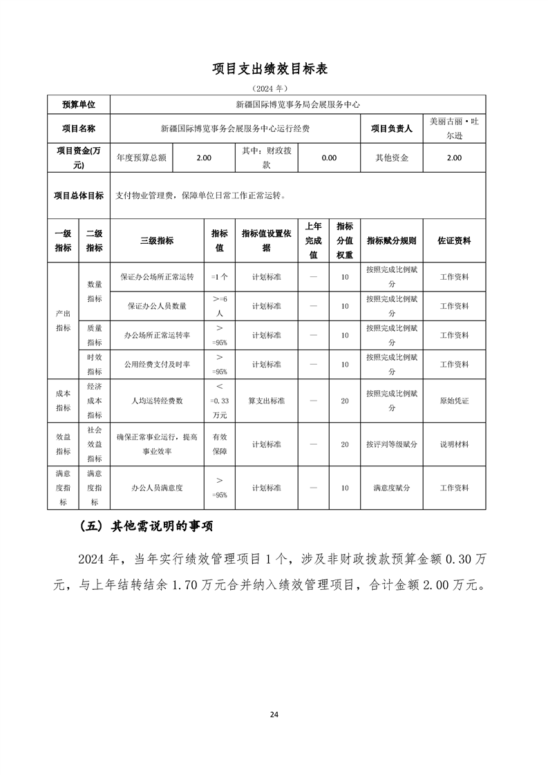 新疆国际博览事务局会展服务中心2024年单位预算公开
