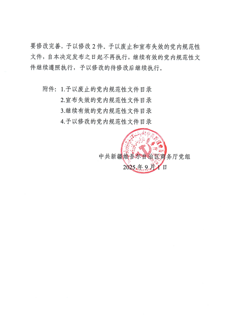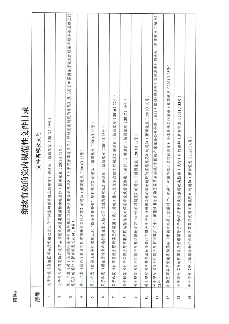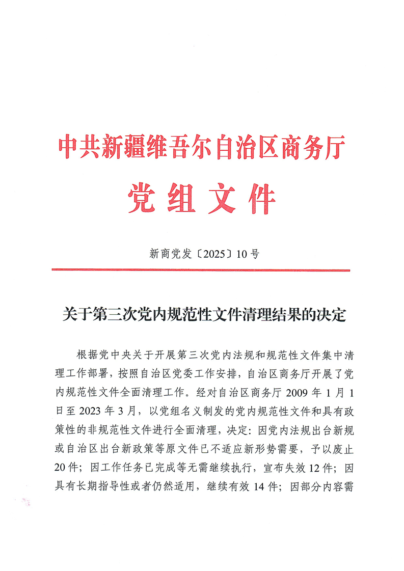 新疆维吾尔自治区商务厅关于第三次党内规范性文件清理结果的决定