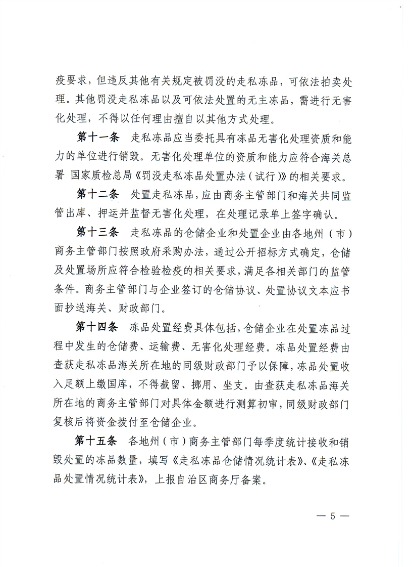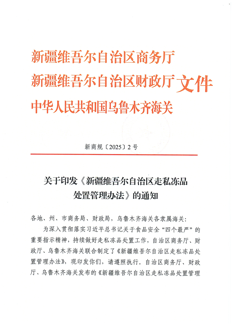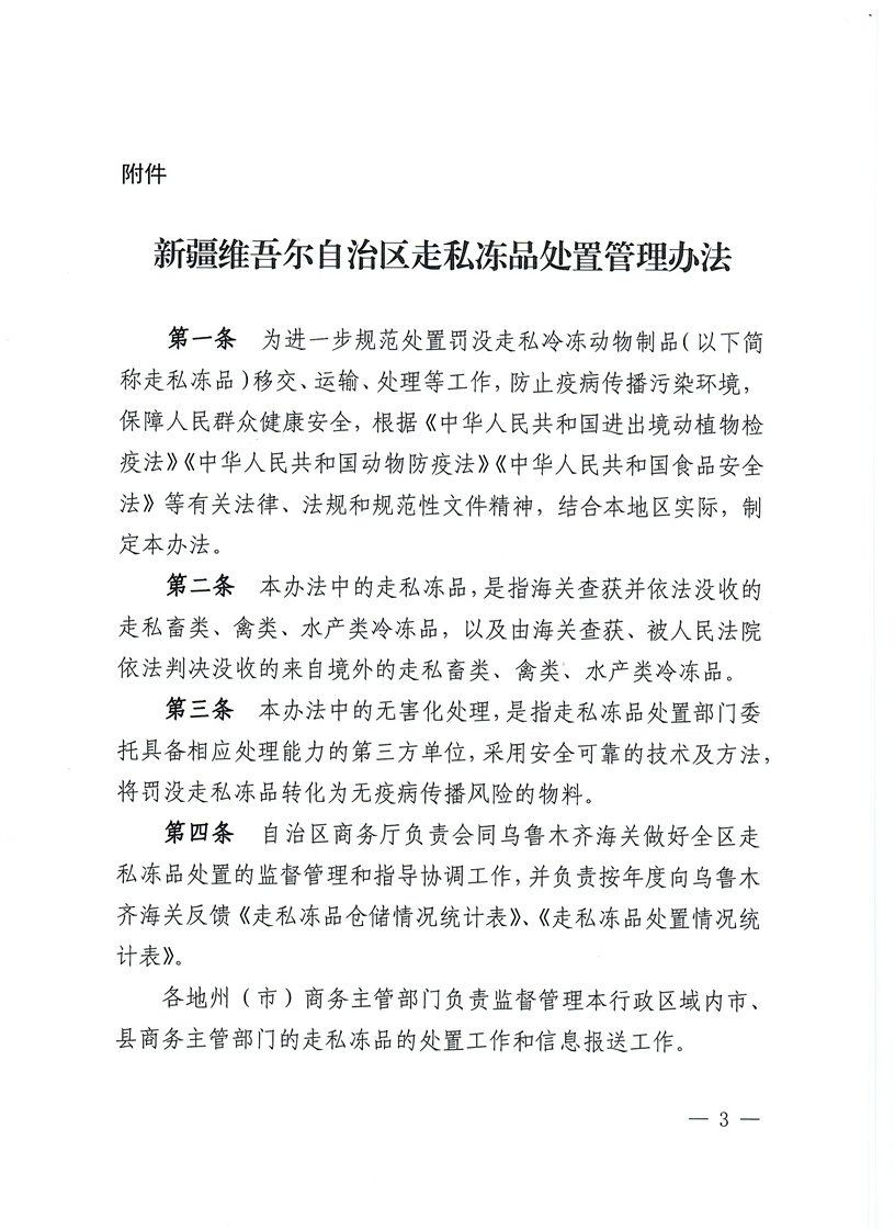关于印发《新疆维吾尔自治区走私冻品处置管理办法》的通知