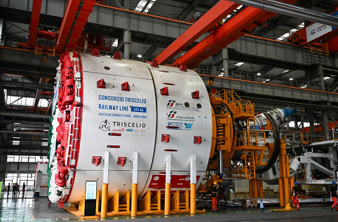 这是6月18日在天津自由贸易试验区天津港东疆片区的中铁工程装备集团(天津)有限公司拍摄的即将出口意大利的盾构机。