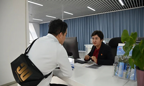 11月11日,自贸试验区喀什片区服务大厅里,工作人员正在给企业负责人解读相关优惠政策。