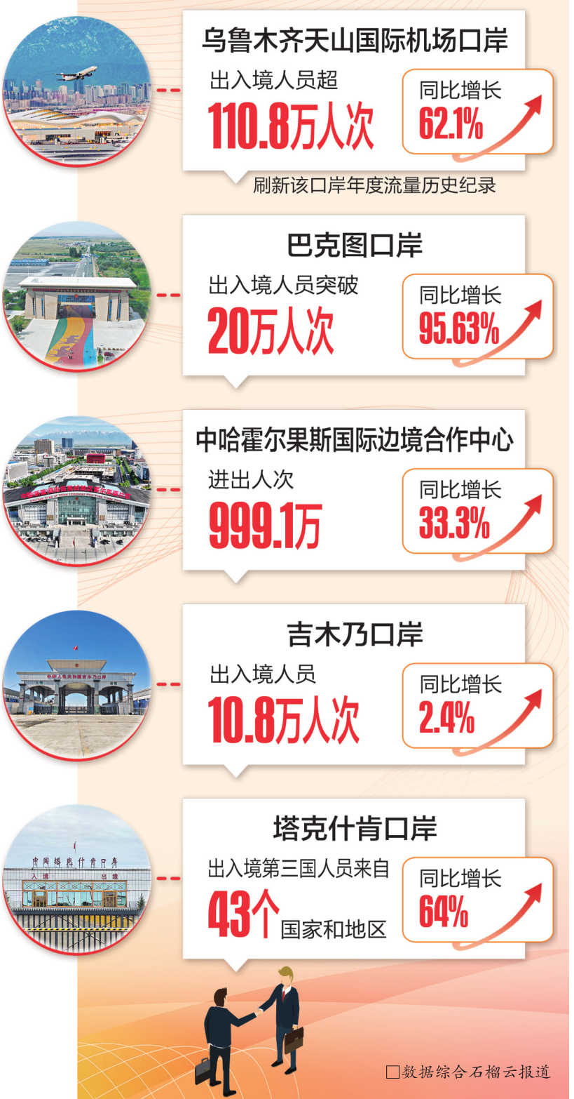在一系列优化通关措施、免签及航班加密等政策的积极推动下,2025年,新疆各口岸涉外经贸往来更加紧密,出入境人员数量实现增长。